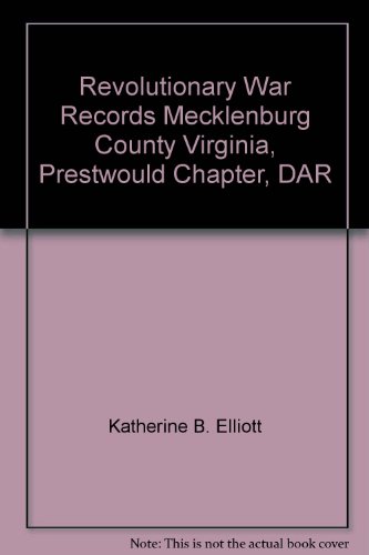 See all customer reviews...Revolutionary War Records Mecklenburg County Virginia, Prestwould Chapter, DAR, by Katherine B. Elliott PDF